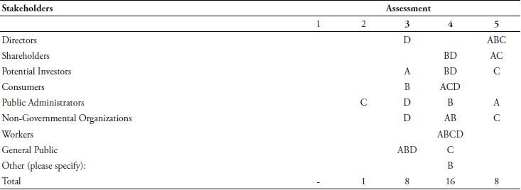 In general, it is noted that the companies emphasize the importance of considering multiple users of information. For instance, company A “(...) annually produces a social and environmental report, available on our website, in order to disseminate the results to stakeholders”.