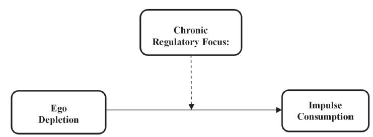 The following is a theoretical model that aims to illustrate the main relationships between the constructs investigated by this study. According to the model, there is supposedly a direct relationship between the ego depletion of individuals and impulse consumption decisions, and this relationship is moderated by the regulatory focus of the individual.