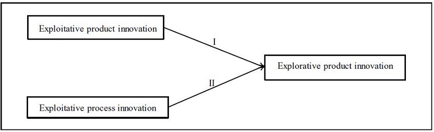 We proposed to use the exploration-exploitation concept for product and process innovations. Exploitative innovation is defined, in this research, as the set of activities to incrementally refine a firm’s existing processes or existing products that focus on existing product-market domains, while explorative innovation is the development of new processes or products aimed at entering new product-market domains.