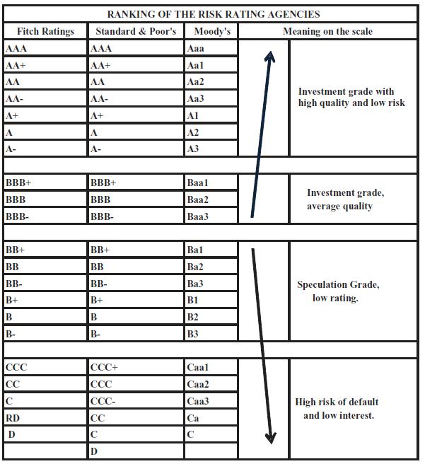 The risk rating system is a process that involves analyzing the financial strength and risk exposure of companies/countries (Moody’s, 2016; Fitch, 2015; Standard & Poor’s, 2011). In 2015, the three biggest international rating companies were Fitch, Moody’s, and Standard & Poor’s (Distinguin, Hasan, & Tarazi, 2013). According to Gaillard (2014), to develop ratings, the agencies (CRAs) visit the companies and countries assessed in order to discuss financial and operational plans and performance strategies among all participants.