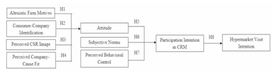 H8: A positive relationship exists between consumers’ participation intention regarding the CRM campaign and consumers’ hypermarket visit intention.