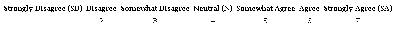 This study used a seven-point Likert scale (from strongly disagree to strongly agree) to measure the constructs. Table 1 provides the list of sample items and their references, where the items were adapted from.