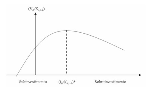 In the paper by Morgado and Pintado (2003), the existence of an optimal level of investment was identified through a quadratic relation between the value of companies and the investments made by them. On the other hand, Cookson (2017) argues that financial leverage is relevant both to the level of investment of companies and to the composition of the industry. Figure 1 shows that the value of a company will increase until the optimum investment point is reached, that is, up to all positive NPV projects are executed. Additional investments, which characterize overinvestment, are responsible for reducing its value, and levels below the optimal point are situations of underinvestment, where the company does not obtain the maximum value it could.