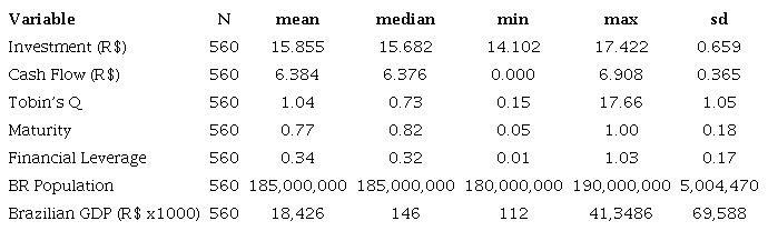 Through the descriptive statistics shown in Table 3, it is possible to confirm the high variability of the data on the Brazilian companies, as already observed in other studies, for example in the one by Albuquerque and Matias (2013).