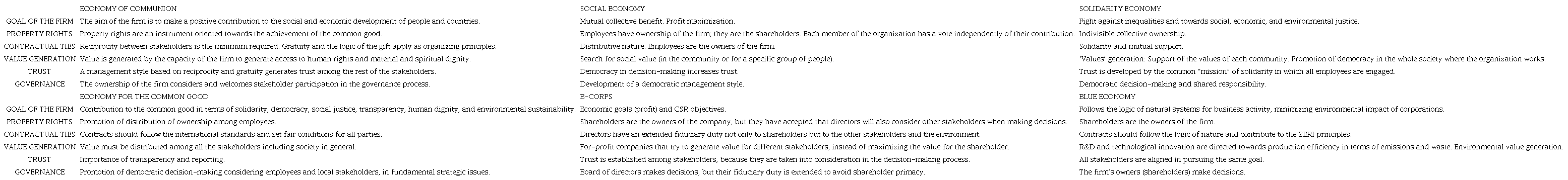 In addition, and according to the panel of experts, three of them rank higher in terms of identification with the stakeholder approach: solidarity economy, social economy, and the economy of communion.