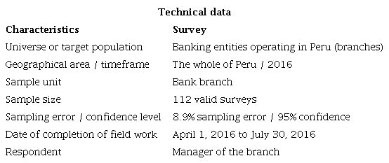 A quantitative methodology was used to contrast the hypotheses presented in this paper and to demonstrate with a large sample the descriptive findings of the case study described in the previous section. The empirical research began in March 2016 with the presentation of the initial questionnaire to the directors of the Association of Banks of Peru (ASBANC). This pilot served to prepare the final survey.