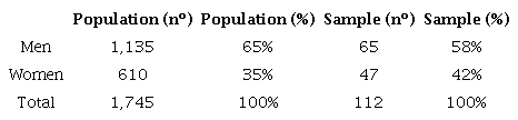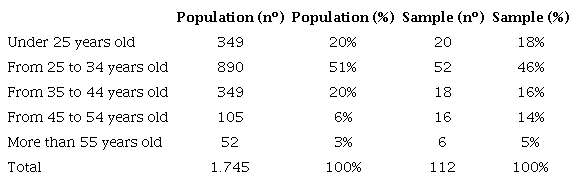 To analyze whether the sample is representative of the population, the frequency distributions are shown by gender and by age (Tables 4 and 5).