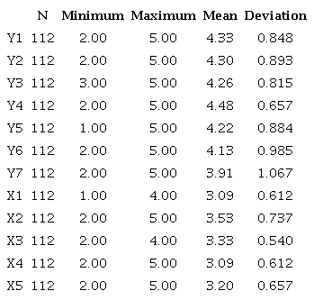 The second group of questions refers to worker involvement in CSR actions. Based on the study by Becker-Olsen, Cudmore, and Hill (2006) on the advantages of human capital derived from the involvement of workers in CSR, a question was asked about the importance of involving employees in CSR programs, following the recommendations of previous studies. The variables assessed: a) CSR programs that involve employees (X1) (Bauman & Skitka, 2012; Ghafoor & Islam, 2015); b) the bank’s working environment (X2) (Crites, Fabrigar, & Petty, 1994; Ghafoor & Islam, 2015); c) the bank’s concern for its employees (X3) (Ashforth & Mael, 1989; Du, Bhattacharya, & Shen, 2010; Hogg & Terry 2000; Rupp, 2011); d) the level of investment in CSR programs that the bank performs through its employees (X4) (Eberle, Berens, & Li, 2013; Sen & Bhattacharya, 2001); e) employee participation in the bank’s CSR programs (X5) (Bauman and Skitka, 2012; Ghafoor & Islam, 2015).