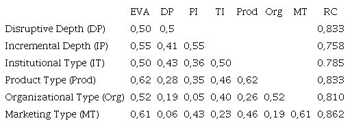 Is it evidenced that the convergent validity is met, since the AVE for each construct is greater than or equal to 0.5, and the CR is greater than 0.7 in all constructs. Discriminant validity under the criterion of the literature (Fornell & Larker, 1981) is also satisfied, since each AVE is larger than the correlations between the squared constructs. Therefore, the model is validated in terms of its consistency and repeatability.