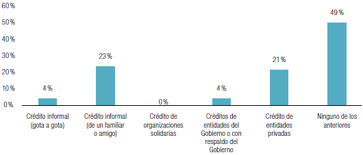 El acceso al crédito es una gran limitante para las emprendedoras encuestadas ya que el 49 % manifestó no tener acceso a ninguna de las opciones de crédito. En cuanto a la mayor dificultad que tuvieron que enfrentar debido la emergencia sanitaria el 60 % manifestó que fue la falta de demanda, el 23 % considera que fue la falta de financiamiento (figura 2).