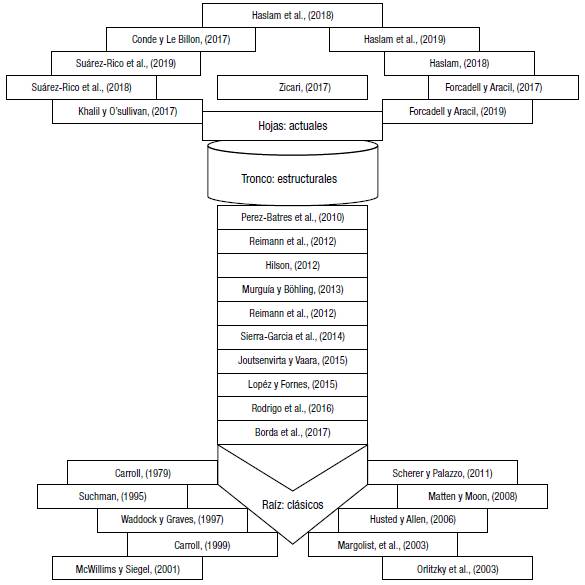 Las raíces del árbol de conocimiento de la RSE en Latinoamérica mostraron un interés inicial por comprender el significado del desempeño social de las empresas de forma teórica, presentando una evolución del concepto a través del tiempo, en el que se analizan y describen los motivos por los cuales las empresas optan por adoptar prácticas de RSE, especialmente en relación con la legitimidad.
