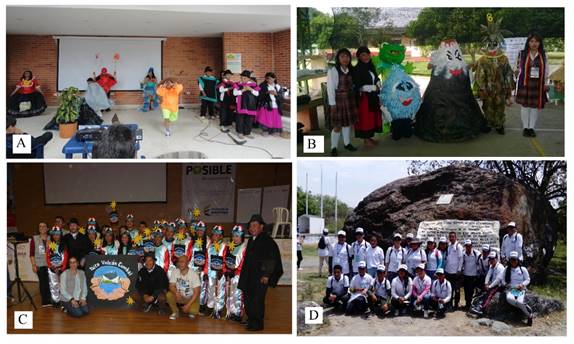 Entre los ejercicios académicos identificados en las mingas del pensamiento, están las actividades del Bienal Nacionales de Niños, Niñas y Jóvenes que viven en Zonas de Riesgo Volcánico (ver Figura 3) y Ascenso anual al volcán (ver Figura 4), estrategias de apropiación social del conocimiento geocientífico que desde el SGC permiten el intercambio de saberes, experiencias, conocimientos ancestrales y técnicos (Gómez & Narváez, 2017). Entre las narrativas indican la importancia de compartir, divulgar y comunicar la información adquirida, esto con el propósito de ayudar a los demás miembros de su comunidad, lo cual disminuye las condiciones de riesgo de la comunidad escolar y también permite la adopción de comportamientos seguros para salvaguardar vidas en un posible escenario de erupción, acciones de gestión del riesgo que enriquecen las herramientas ya obtenidas, para enfrentar la amenaza presente en su territorio.