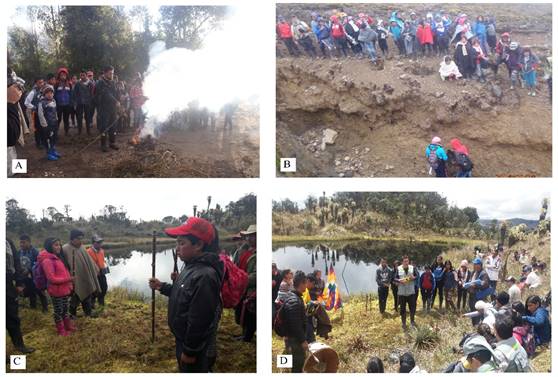 De esta manera, se indican sentimientos de respeto hacia la Pachamama, agradecimiento a la montaña por el páramo y su valioso papel tanto en la captación como recuperación del agua, así como fuente hídrica y custodio de muchas especies. Este agradecimiento y respeto, implica tomar solo lo que se requiere, puesto que su territorio les brinda los sustentos indispensables para su existencia como lo menciona Boff (2012) “vivir en comunión profunda con la Pacha -la energía universal-, que se concentra en la Pachamama -la Tierra-, con las energías del universo y con Dios” (p. 62).
