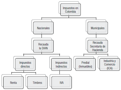 Teniendo en cuenta la diferencia entre tasas, contribuciones e impuestos, a continuación, se hace la caracterización (aproximada) de los impuestos en Colombia.