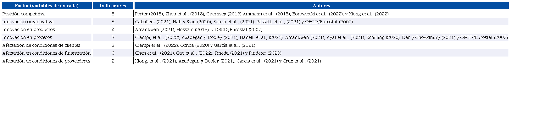 Si bien las empresas de algunos sectores como el hotelero (Thi Mai Nguyen et al., 2023), de la construcción (Gajdosikova et al., 2022) y los restaurantes (Gomes et al., 2022) se vieron fuertemente afectados por la crisis generada por la pandemia, esta investigación realizó un análisis del comportamiento de las mipymes que lograron sobrevivir a esta crisis, independientemente del sector económico en el cual participan.