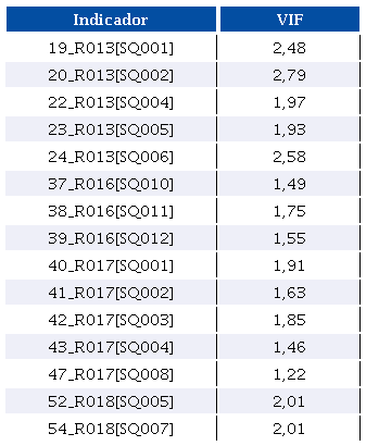 A continuación, se presentan los estadísticos de bondad obtenidos del modelo reflectivo y estructural. De acuerdo con la información presentada en las tablas 6, 7 y 8, el modelo cumple con los criterios de validez convergente, fiabilidad de consistencia interna, validez discriminante y colinealidad.