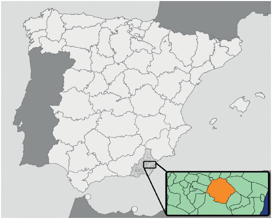 El municipio de Lubrín se encuentra en la provincia de Almería, en la comarca del Levante Almeriense (véase el mapa de la figura 1), con una superficie de 138 km² y una población de 1.457 habitantes (Instituto Nacional de Estadística, 2023). La agricultura, la ganadería y la minería han sido las principales actividades productivas del municipio desde sus orígenes hasta la actualidad.