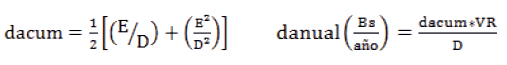 Dónde: dacum= depreciación acumulada. E= edad. D= vida útil. danual (Bs/año)= depreciación anual. VR= valor real