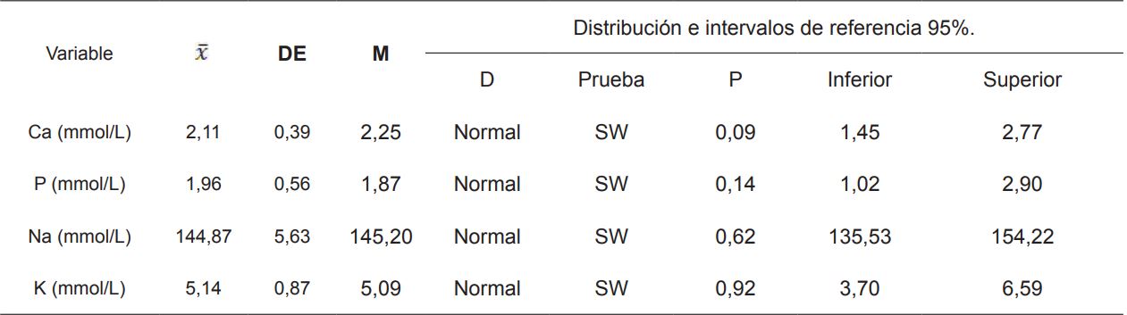 Sobre los parámetros bioquímicos influyen numerosos factores, entre ellos la genética, edad, sexo, estado fisiológico, la época del año y la alimentación [11, 16, 20], por lo que se necesita establecer los valores fisiológicos de referencia para cada indicador bioquímico en condiciones específicas [7].