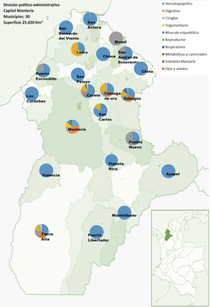 Con los datos obtenidos se realizó un análisis descriptivo en el cual se tuvo en cuenta los diferentes diagnósticos definitivos, los principales sistemas orgánicos afectados y su distribución en cada uno de los Municipios del departamento de Córdoba.