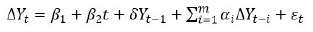 δ: es un coeficiente igual a (ρ-1), donde si ρ=1 existe raíz unitaria (no estacionario),