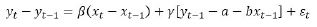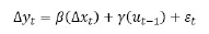 β: corresponde a la estimación de la influencia de corto plazo de x sobre y.