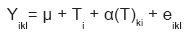 α(T)ki= efecto del k-ésimo animal (j=1,…15) anidado por el i-ésimo tratamiento (i=1,..3);