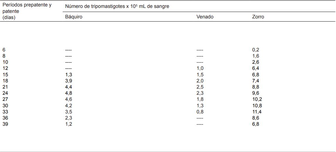 La mayoría de los resultados ya detallados se han limitado al señalamiento del encuentro del parásito. Esto indica que, propiedades biológicas fundamentales de un taxon tan heterogéneo como T. cruzi, las cuales se desarrollan en sus hospedadores naturales y experimentales, tales como: cinética del desarrollo de las fases del parasitismo, pleomorfismo en la sangre; tropismo tisular (rango de la eficiencia del tripanosoma para colonizar tejidos y vísceras como ambientes o nichos preferenciales), virulencia y patogenicidad, rata de mortalidad, eficiencia para colonizar el lumen del tracto digestivo y de los túbulos de Malpighi del vector así como comportamiento en hemocultivos y cultivos celulares, son todos parámetros necesarios para determinar con precisión la identificación de T. cruzi y de posibles correlaciones entre estas propiedades y sus aislados [16, 35, 36].