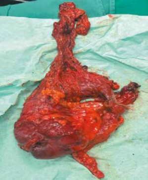 Paciente tolera acto operatorio, evoluciona favorablemente y es dado de alta al quinto día posoperatorio.