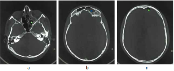 Paciente varón de 20 años, natural de Lima, con tiempo de enfermedad de 2 meses, refiere cefalea tipoopresiva escala visual análoga (EVA) 8/10 en región frontal izquierda y convulsiones, refiere antecedente de trauma en región de fosas nasales y región frontal.