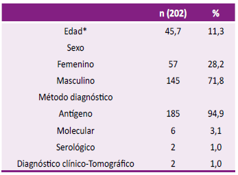 En relación a las características de los casos estudiados, estos presentaron síntomas por más de una semana antes de acudir al hospital, tuvieron menos de una semana de tratamiento y aproximadamente un tercio (34,2 %) de estos fallecieron (Tabla 3).