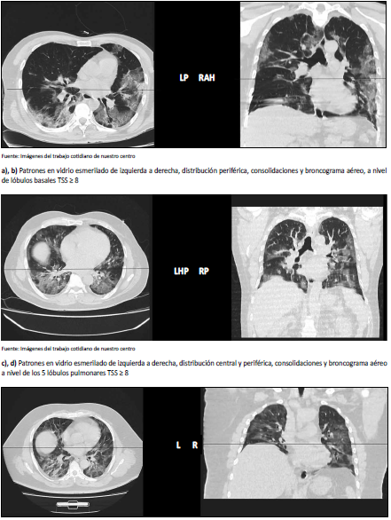 Los patrones tomográficos en vidrio esmerilado característicos, se aprecian en la figura 1.