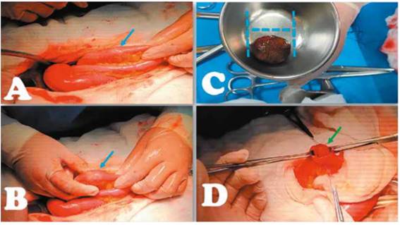 La cirugía recomendada por la mayoría de los autores es la enterolitotomía [2,3,7,15,16], seguida (o no) de cirugía biliar electiva [13,17], por presentar un bajo índice de complicaciones y cierre de la fístula de manera espontánea en el 50 % de los casos [3]. Además, existe buena tolerancia a las FBD que no cierran espontáneamente [18]. La enterolitotomía se realiza en forma longitudinal en el borde antimesentérico a una distancia de 15-20 cm proximales al sitio de la obstrucción en un área sana, posteriormente se procede a la extracción del lito y, finalmente, se realiza enterorrafia transversal en 1 o 2 planos. Cuando el lito no puede ser movilizado para su extracción, existe compromiso vascular o perforación intestinal, se prefiere resección del segmento intestinal con anastomosis terminal [3].