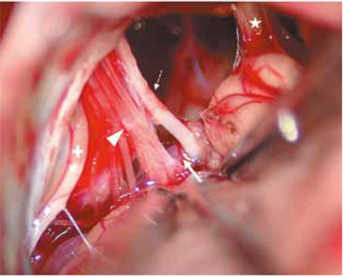 En los casos de recurrencia se incluye el tratamiento con radiocirugía, que ha mostrado una respuesta favorable inicial del 73 %, según Kano et al. También se incluye la reintervención quirúrgica, donde hay 2 técnicas para realizar: la interposición y la transposición. La interposición es la técnica habitual usada con un pedazo de teflón entre el vaso y el nervio, mientras que la transposición es la reposición del vaso hacia otro lado, de tal forma que deje completamente libre al nervio. Los estudios en espasmo miofacial y neuralgia trigeminal han determinado que la técnica de transposición tiene mejores resultados, por lo cual podría extrapolarse [14-17].