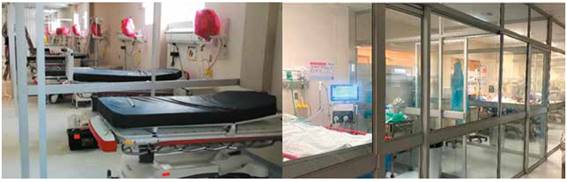 Unidad Crítica de Emergencia: Las dos olas que nos tocó enfrentar permitieron la adaptación de la infraestructura, en especial, el crecimiento de camas críticas, pasando de 20 a 68 camas críticas para la atención de los pacientes más graves; así tenemos que la unidad de cuidados intermedios se transformó en unidad crítica, y las salas de cuidados generales, en cuidados intermedios, mejorando las unidades con presión negativa y recambio de aire. También se crearon 68 cubículos individualizados con zonas de esclusas y 80 camas para las unidades de cuidados intermedios; así mismo, se creó la unidad de ventilación no invasiva y cánula de alto flujo con 20 camas.
