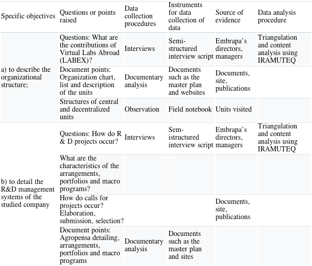 The research protocol involved semi-structured interviews with managers of the organization: with the advisor to the Research and Development Board and the R&D Chiefs of two decentralized units (totaling three interviews). People with extensive knowledge about the organizational structure and the R&D management system of the studied company. We recorded the interviews with permission and transcribed, totaling 22 pages. We collected secondary document data, with emphasis on the Embrapa’s Master Plan and other strategic documents of the organization (totaling 319 pages), in addition to the organization’s website.