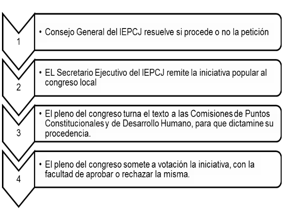 En la primera etapa se observó que esta iniciativa recibió el respaldo de 1.3% de los ciudadanos integrantes del padrón electoral. Por lo tanto, el Consejo General del IEPCJ declaró procedente la solicitud.