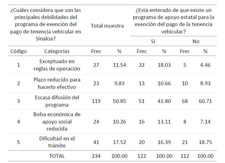 La percepción social del subsidio a la tenencia vehicular: caso Sinaloa 2014