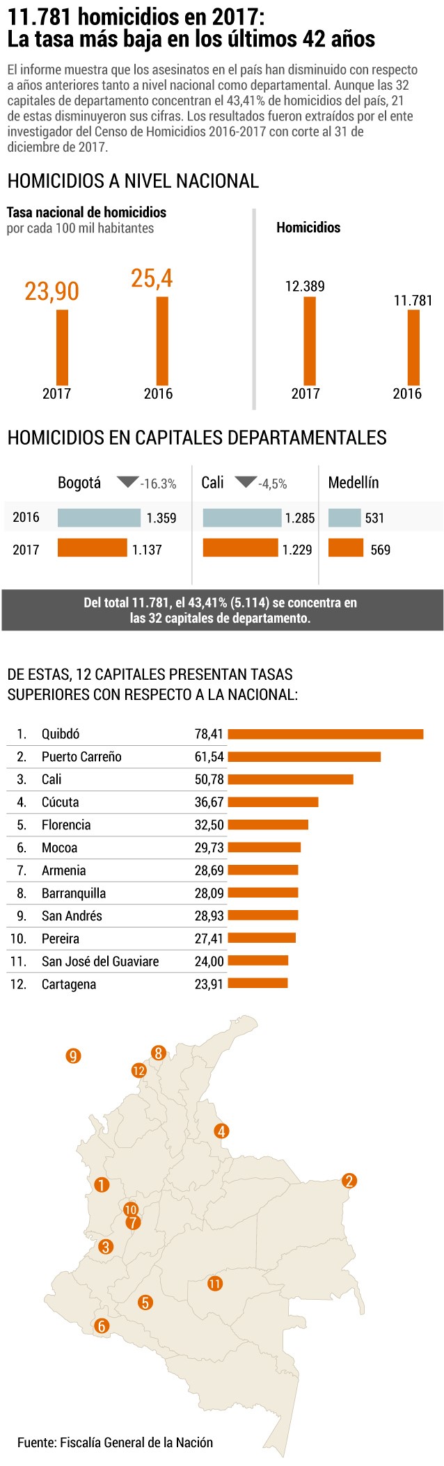 El espectador (2017). Homicidios en Colombia: la tasa más baja en los últimos 42 años se dio en 2017, extraído de: https://www.elespectador.com/noticias/judicial/homicidios-en-colombia-la-tasa-mas-baja-en-los-ultimos-42-anos-se-dio-en-2017-articulo-734526 consulta 15/05/2018.