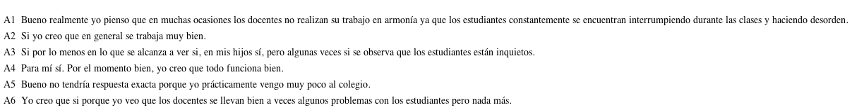 Producto de la entrevista efectuada a padres y/o acudientes en torno a como de desarrolla la labor de los docentes en la institución se logra evidenciar desde la visión del acudiente que los ambientes escolares son armónicos y la comunicación y armonía van de la mano.