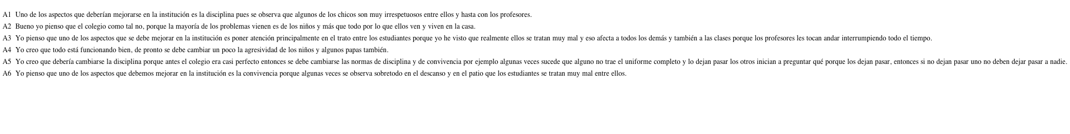 Por otro lado, es de conocimiento que la mayoría de los conflictos están asociados a un grupo reducido de estudiantes que tienen conductas disruptivas violentas y malos tratos, lo cual afecta el clima de aula. Ante esto, las familias consensúan una estrategia de mejoramiento integral de la convivencia que fortalecen las competencias ciudadanas, garantizando la buena convivencia, y el compromiso con actividades en las que la familia desea participar para ayudar a la convivencia.