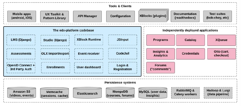 Open edX Developer’s Guide. (2018). Open EdX Architecture. Extraído de https://edx.readthedocs.io/projects/edx-developer-guide/en/latest/architecture.html . consulta 05/02/2019