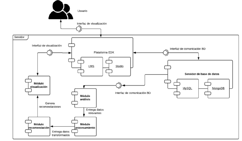 Ahora bien, el módulo de la plataforma EDX y el servidor de base de datos hacen parte de la arquitectura propia de EDX por lo que no se ahondará en detalles en estos.