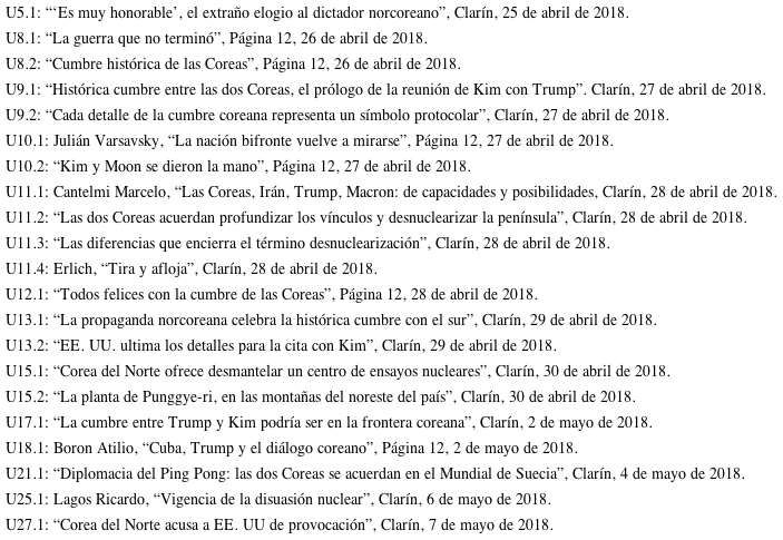 Keywords: Clarín, Página 12, Korea, Inter-korean summit, Argentina.