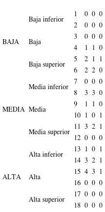 13 a 18 puntos= importancia alta. (13 y 14: alta inferior; 15 y 16: alta; 17 y 18: alta superior).