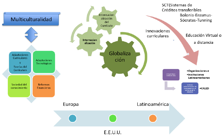 Abstract: Year after year the number of students in higher education increases worldwide, and particularly in the virtual mode. In the face of this reality, a series of phenomena combine that have driven university institutions to reinvent themselves. The objective of this work is to analyze the influence of globalization and internationalization on the curriculum of university education, with particular emphasis on Latin American virtual education. The methodology used is the review of both literature specialized in the subject and official documents of the agencies involved. The results reveal that: 1) multilateral agencies have been made efforts to establish two-way academic partnership and cooperation agreements, on the one hand, to promote the mobility of students and teachers, as well as the realization of joint projects; on the other hand, to promote the processes of quality control and internationalization of the curriculum. 2) Regarding virtual education in the region, the need to ensure and demonstrate the quality of its programs has been set, with the Latin American and Caribbean Institute of Quality in Distance Higher Education (CALED) being one of the main references regarding guidelines and instruments for evaluation and advice to universities on quality assessment and accreditation processes. It is concluded that the internationalization of the curriculum in virtual university education in Latin America faces the challenge of taking the step towards comprehensive internationalization, that is, the one that comprehensively impacts the curriculum from a conceptual and cultural structure including interdisciplinary studies and multiculturalism.