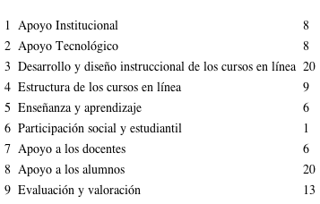 Vale decir que este modelo fue concebido para evaluar programas de pregrado en línea, pero ante la inexistencia de un modelo aplicable al caso de postgrado, se utiliza éste de forma genérica. Por lo tanto, se hace necesario generar herramientas que se enfoquen en verificar si existen criterios aplicables a las particularidades de los estudios de postgrado.