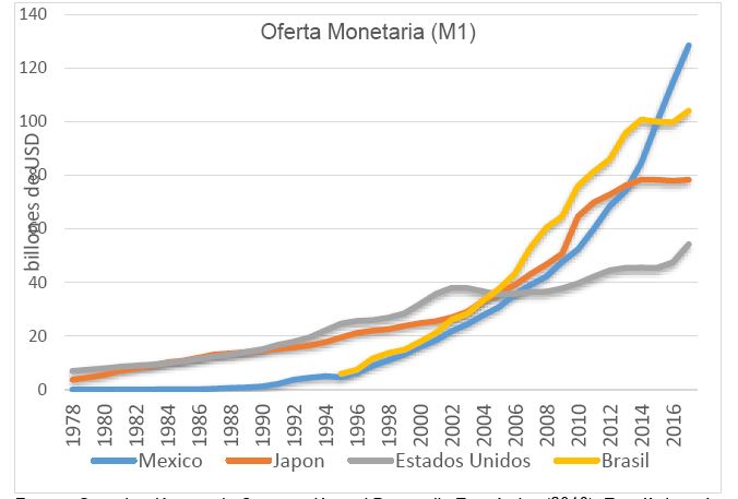 Organización para la Cooperación y el Desarrollo Económico (2018). Extraído de: https://data.oecd.org/money/narrow-money-m1.htm Consulta:18/06/2019.
