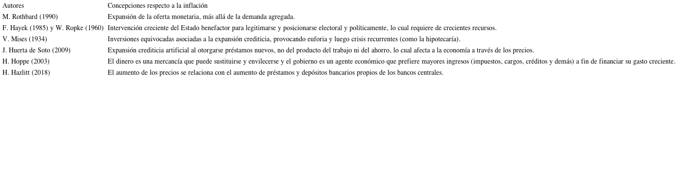 A manera de resumen, a continuación, se presenta el Cuadro 1, en el cual los autores de la EA le confieren una significación a la inflación.