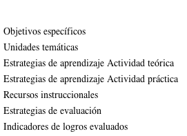 El proceso de planificación de la instrucción involucra, la definición de las unidades temáticas, cada una de ellas, contará con un listado de los indicadores que serán evaluados; asimismo, se establecen los objetivos terminales que hace referencia al alcance de la unidad correspondiente. Un elemento que se debe considerar es el uso de objetivos didácticos, ellos permitirían integrar indicadores y contenidos propios de la disciplina, asimismo orientan la experiencia didáctica.